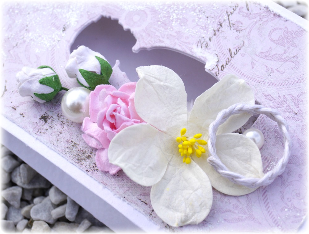 If you looking through the silhouette of the boy and the girl, you can see the promises that lies inside of the bags. This Paper sheets is also from Vintage Romance, and called Words of Love.