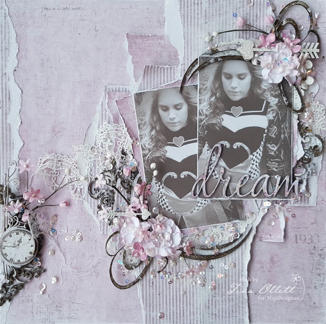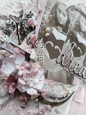 I have also tucked in a little lace and muslin to keep the layout as soft as possible.
