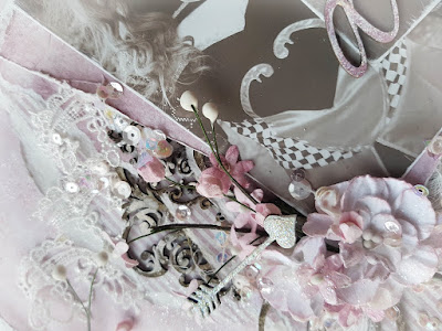 I also added in some florals but I kept it quite minimal for me that is. Above you can see the 49andMarket Floral Mixology flowers that I used. These are the Pina Colada coloured florals that I changed up by wiping over with a little Dusty Sugar Plum acrylic paint.