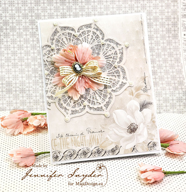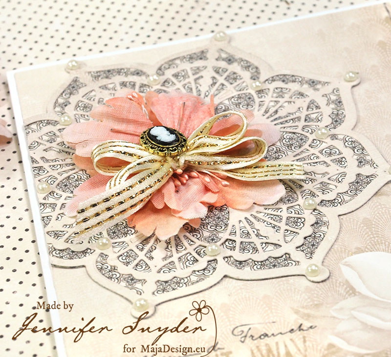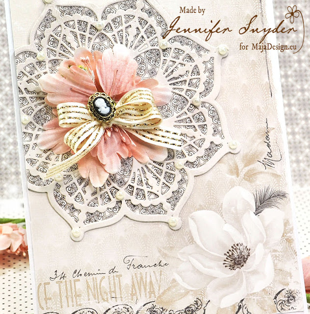 Hello. Jennifer Snyder here with you to share a card made with Maja Design’s Celebration collection. This is a beautiful collection with an elegance of days long gone.