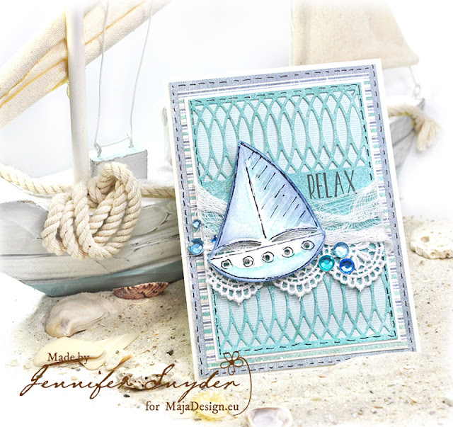 The dies used on this card are from an older Spellbinders nautical sailboat die Die D-Lites Nautical Etched Die S2-226 and a current Spellbinders die by Becca Feeken.