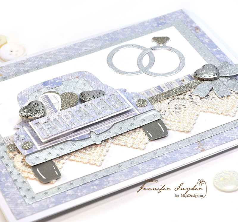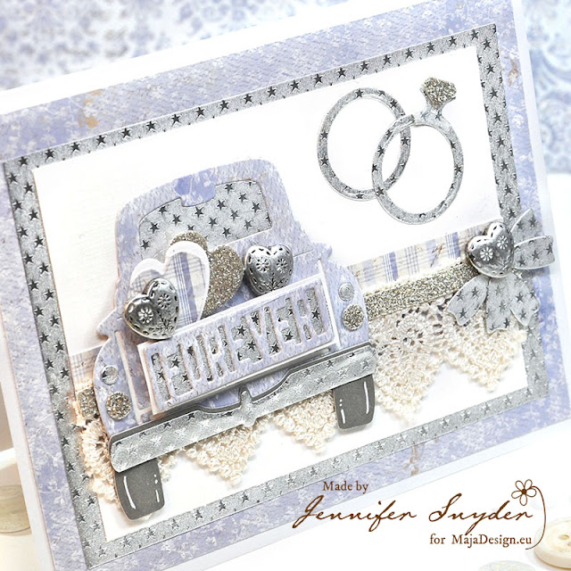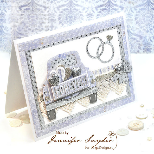 Welcome to Maja Design’s blog. Jennifer Snyder here sharing a card on the romantic side to celebrate an engagement. Exciting news means I get to make a card. Yippee.