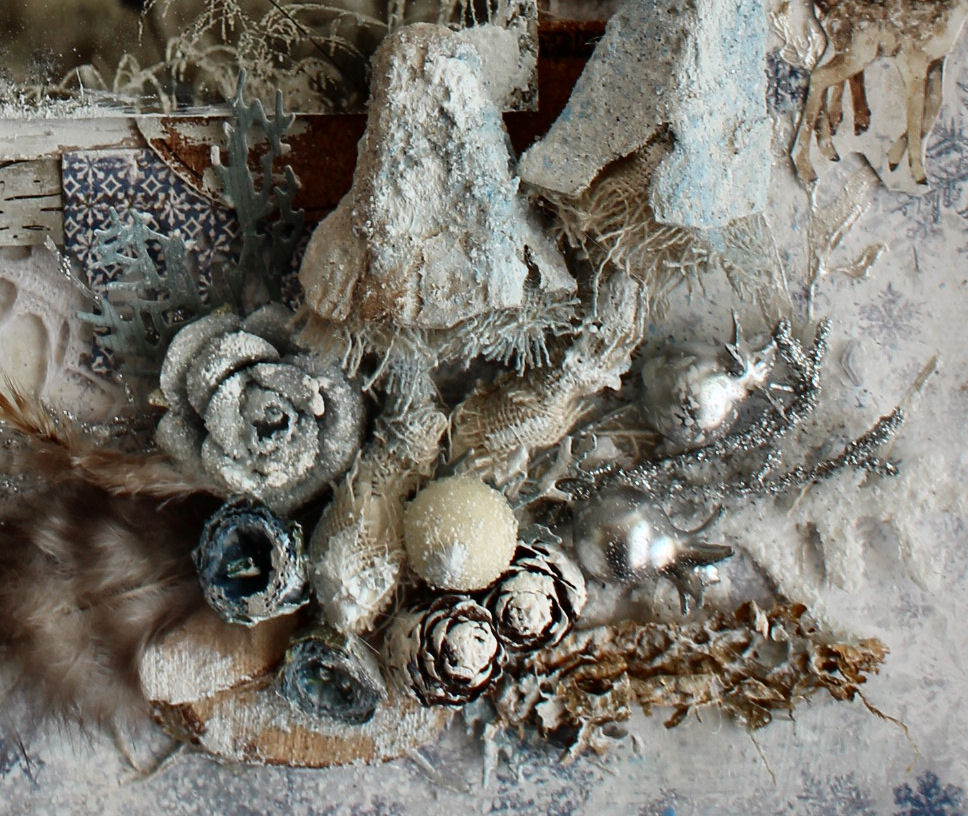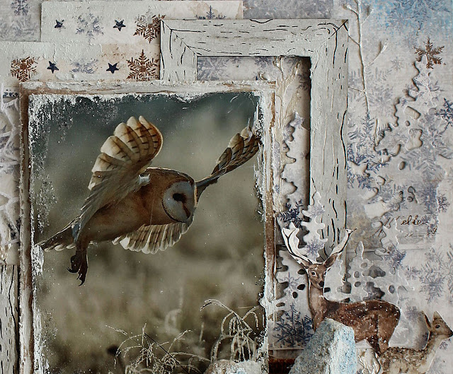 ‘Let it snow’ ; ‘Deers’ and some suitable monochrome papers.