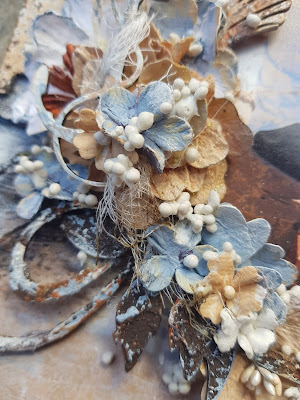I love how the large seashell as seen above here turned out. It was dressed similarly to the leaves but less emphasis on the browns. They were placed on lastly to highlight the blue and orange tints.
