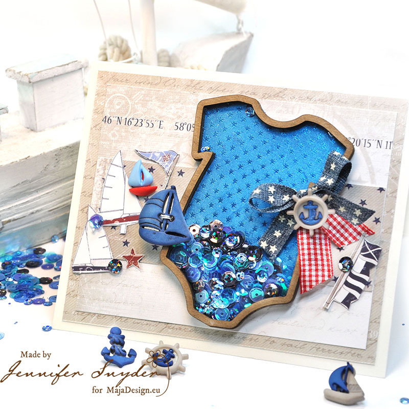 Jennifer Snyder with you today for some shaker card boy cuteness using a classic collection from Maja Design – Life by the Sea. The papers featured today are: