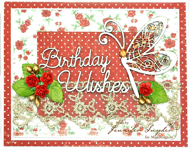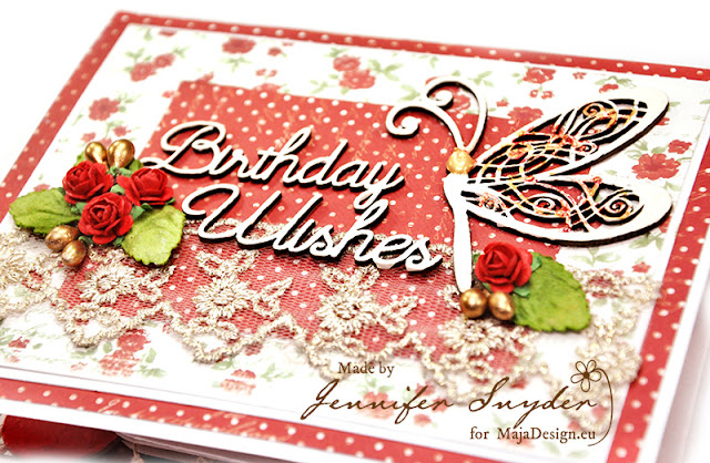 Jennifer Snyder here to present a pop-up twist card featuring two of my favorite product combinations – beautiful fun papers from Maja Design in Sweden and wonderful Creative Embellishments chipboard.