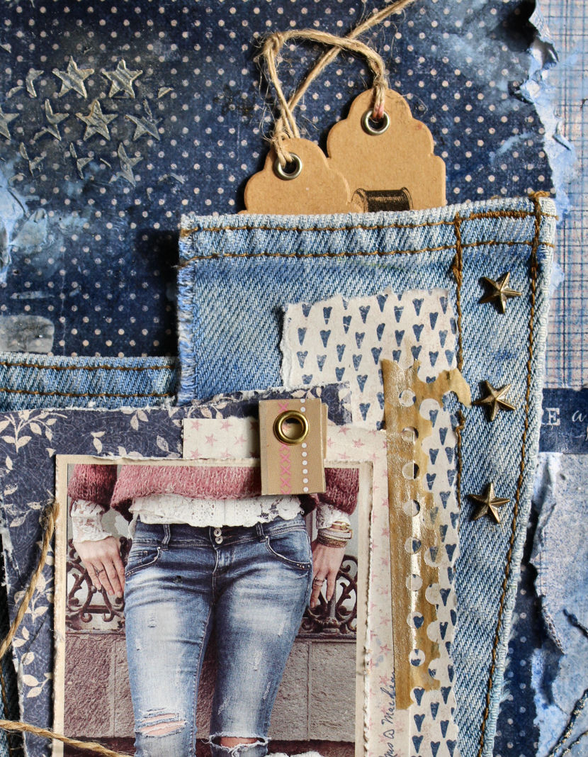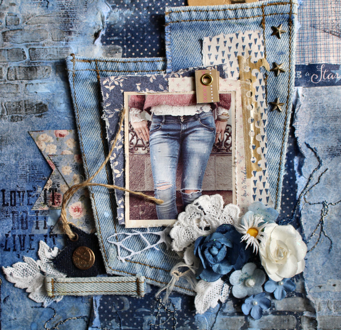 But my favorite jeans also had wonderful pockets :-)! and they had to be used in a handicrafts project. I like to wear jeans and love the combination with delicate white lace blouses or cool T-shirts. With a pair of jeans you are always dressed right., a real inspiration source.