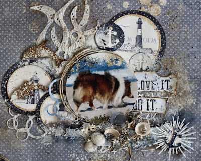 Today a new sea inspired layout with our sunshine Sheltie dog ‘Filou’.