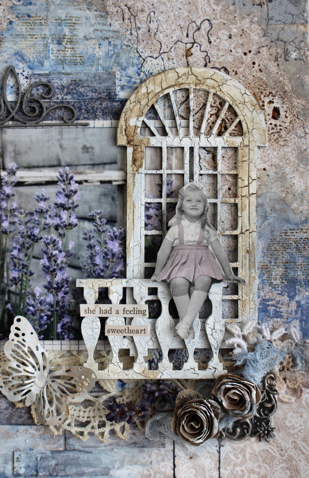 Welcome to this wonderful blog, I made a very colorful layout to show you today and I have used all these gorgeous chippies by 2Crafty Chipboard. This layout was build with lots of layers and I have used two Maja Design collections to do so. The beautiful fine corner florals is treated with white gesso & embossing powder, I wanted it to pop of my page. The clock face I firstly applied gesso on and then some rust paste & and aqua acrylic paints an waxes. On the word “march” I sprayed with some purple lindy’s and then I applied some matte wax.