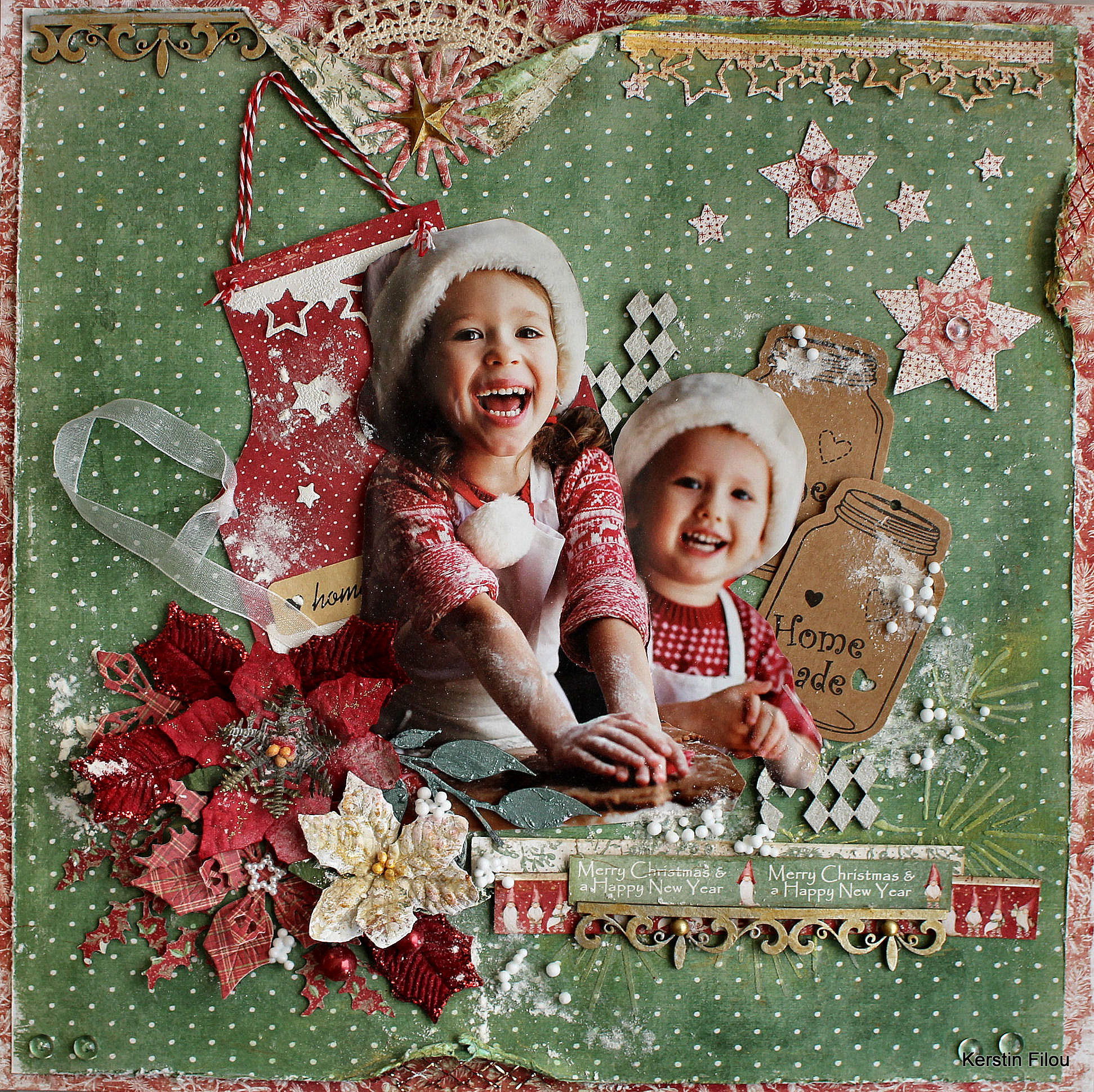 I used the paper sheets ‘Beautiful decorated’; ‘Peace and Joy’ and some papers
