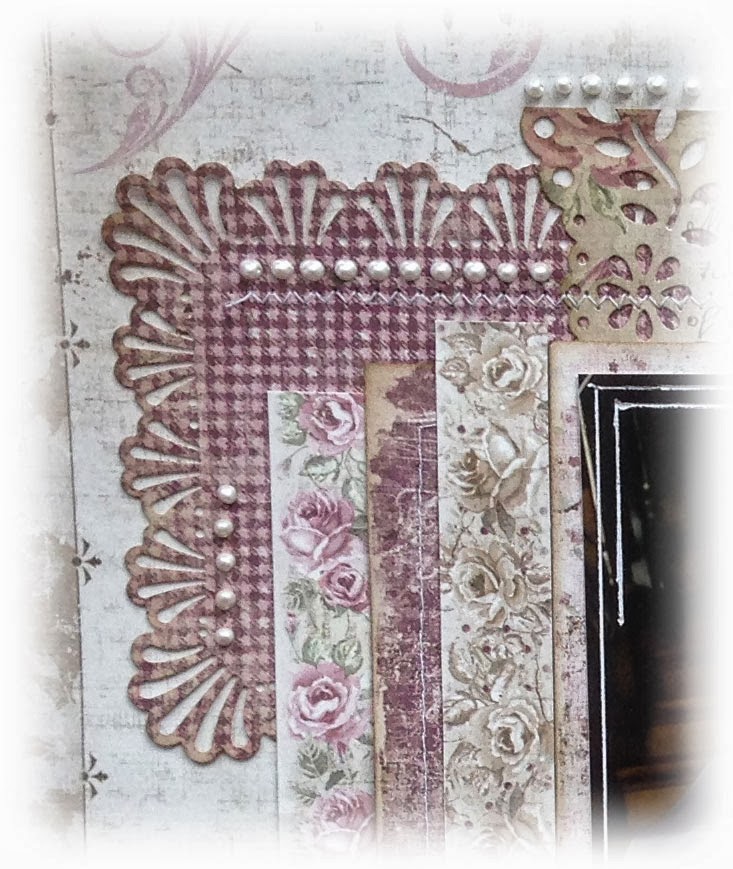I love to use every single piece of the Maja papers… That goes for the gorgeous stripes as well. The stripes in this corner comes from IX and II. I’ve used a small file to create the border on the photo.